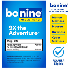 Oh my god. This is by far the most important item on the list. Do yourself a favor and grab some Bonine before you get on your flight—one dose should be good for the whole trip. I used to get insane airsickness, to the point where I'd sometimes go the whole flight without eating lest I throw up. Bonine was a game-changer. I take a dose as soon as I'm at the gate, usually about an hour before boarding the plane, and I'm free of tummy troubles for the day. Or night.